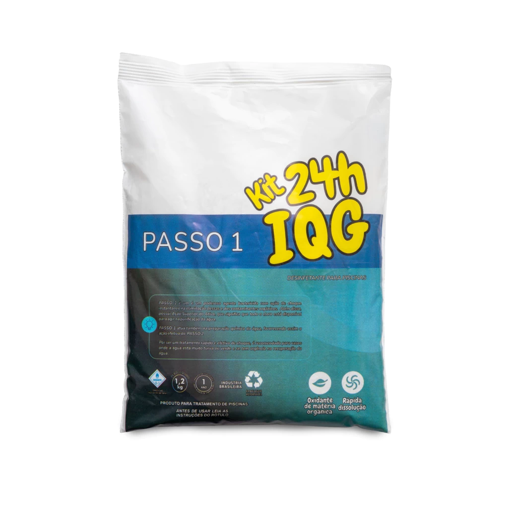 O Kit 24h IQG possui em sua formulação um composto clorado em alta carga, sendo um excelente bactericida e oxidante de matérias orgânicas. na forma de pó.